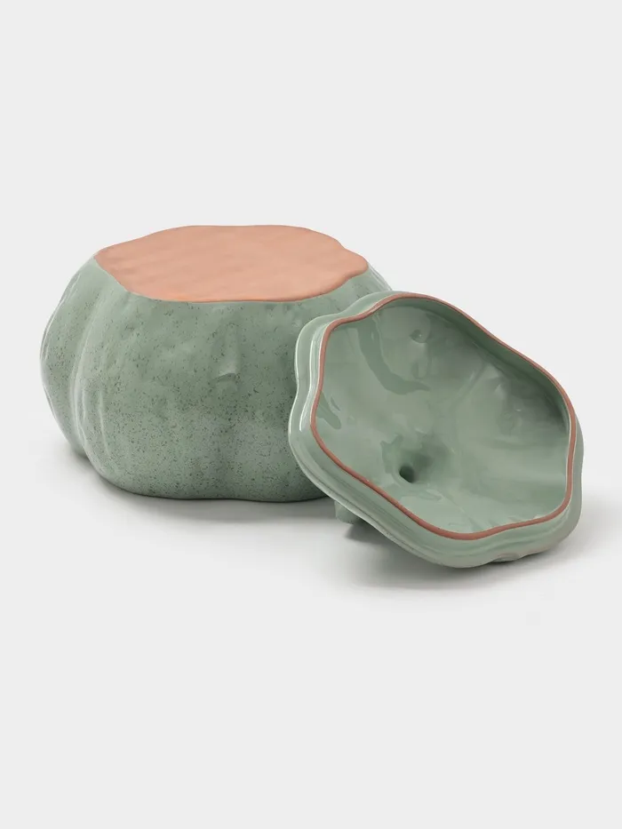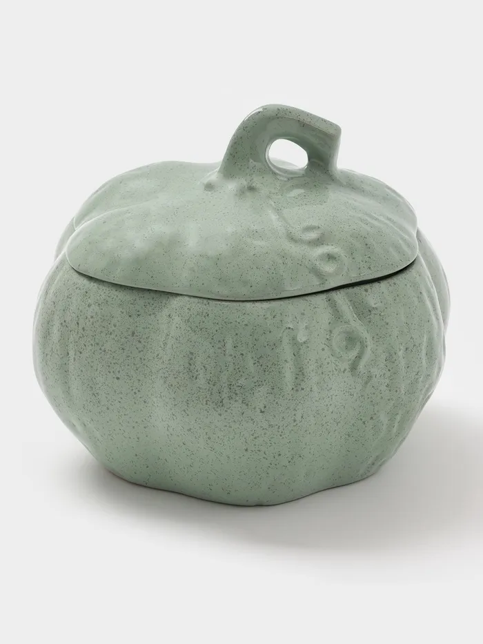 Керамический горшок в форме тыквы — не просто посуда для запекания, а центр притяжения на кухне и праздничном столе. Объём 2,5 л — в самый раз для семейного ужина: запечённые овощи, рагу, курица с картошкой или сытная запеканка. Зелёный цвет и натуральная форма добавляют блюду характер — и хозяйке — удовольствие от подачи.