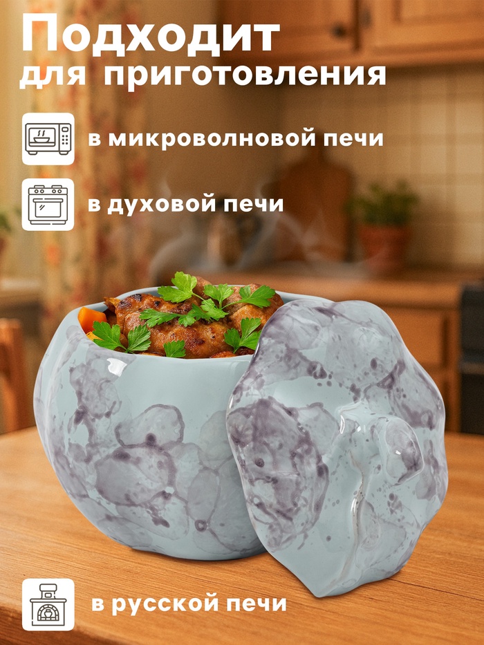 Горшок для запекания с крышкой идеально подходит для приготовления жаркого, запеканок, супов и других блюд, сохраняя их сочность и аромат. Насладитесь традиционным вкусом домашней еды, приготовленной в глиняной посуде.