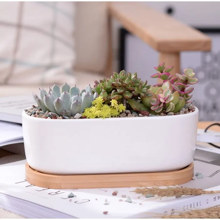 Горшок "Эко Бонсай" для кактусов и суккулентов, овал, 17х9х6см, белый — Характеристики