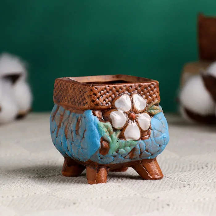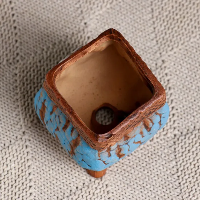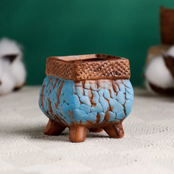 Горшок керамический на ножках, 120 мл, 6×6×6 см, коричнево-голубой — Характеристики
