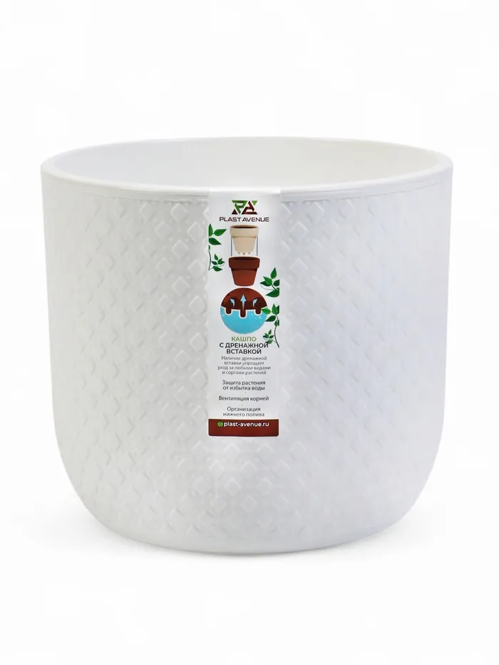 Кашпо для цветов со вставкой Plast-Avenue «Грация», 1.2 л, пластик, белое