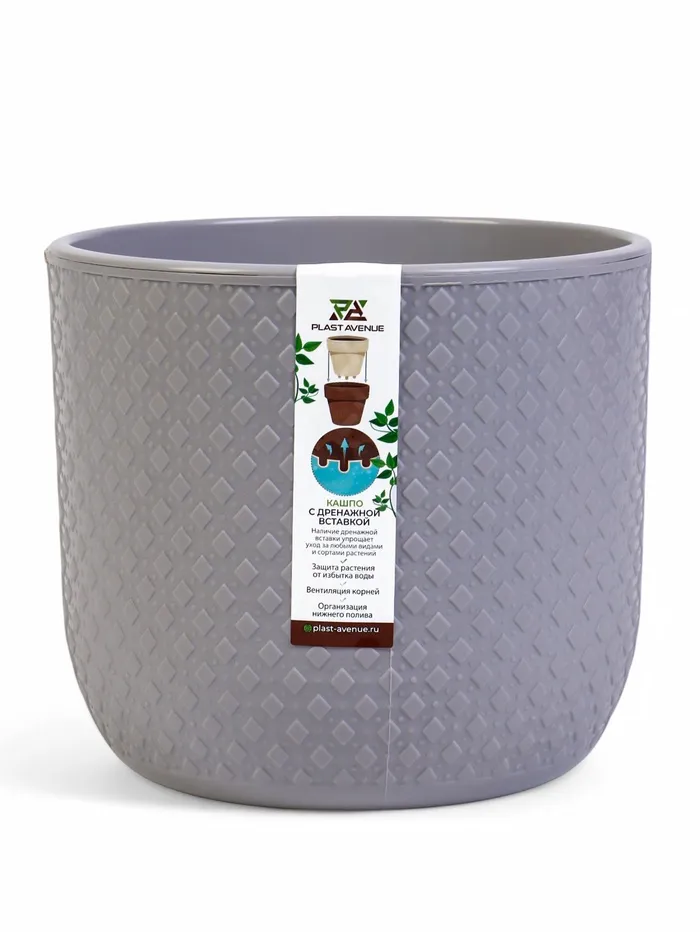 Кашпо для цветов со вставкой Plast-Avenue «Грация», 1.2 л, пластик, белое