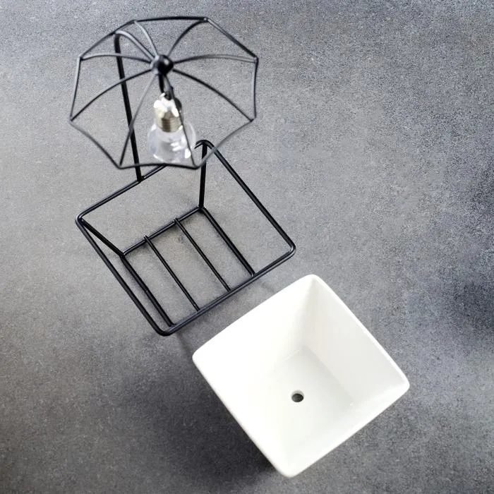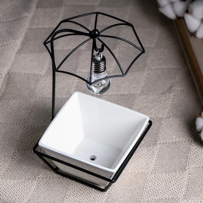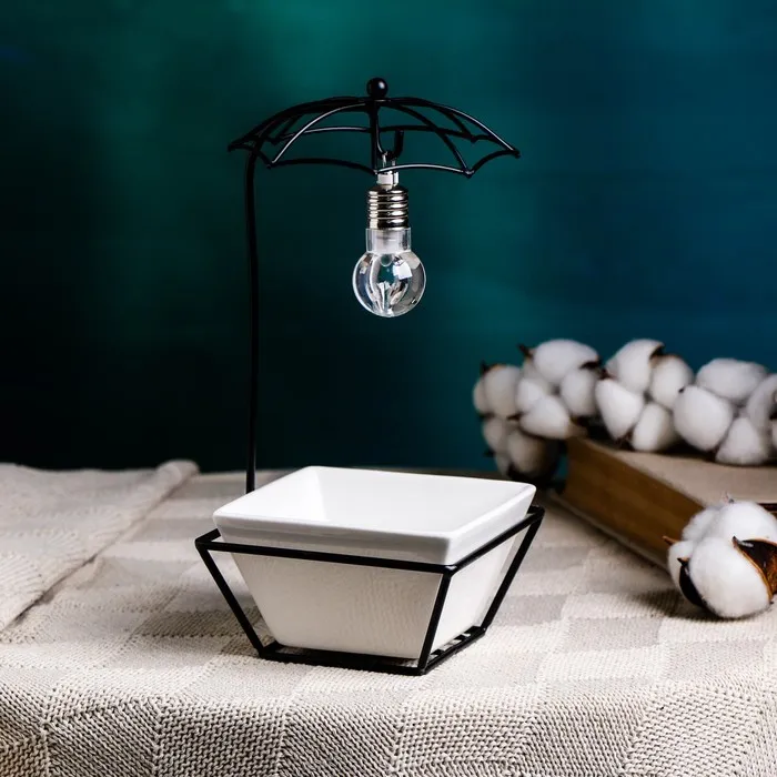 Горшок на подставке с синей подсветкой, керамический, 270 мл, 22×10×10 см, на батарейках AG3 (3 шт. в комплекте), белый на чёрной подставке — Характеристики