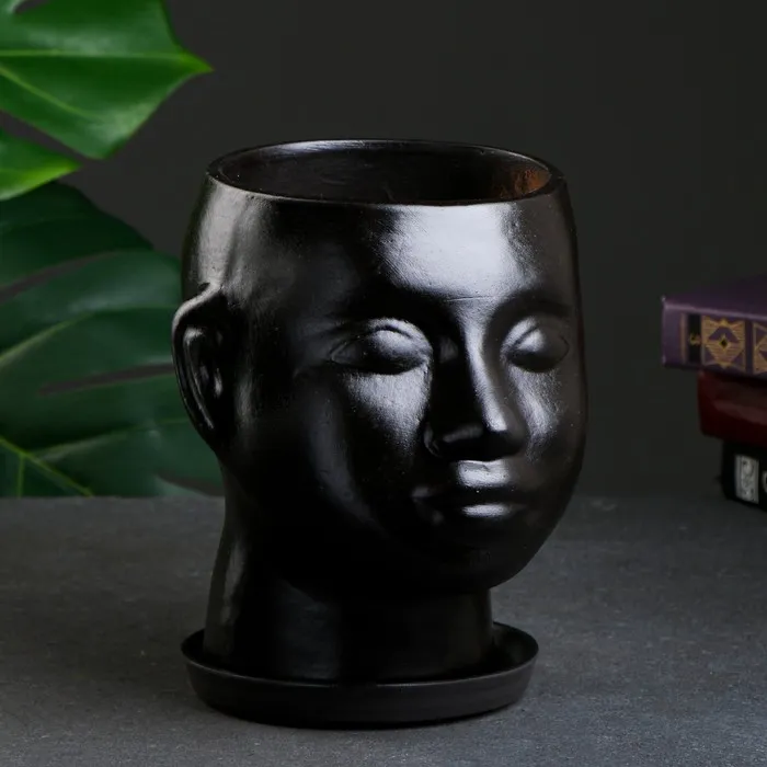 Горшок-органайзер «Голова», керамика, чёрное, 3 л, 24×19 см — Характеристики