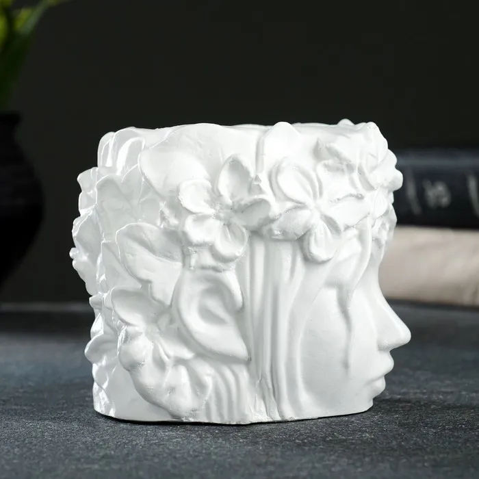 Горшок-органайзер «Лицо девушки», гипс, 350 мл, 12×10×12 см, белый — Характеристики