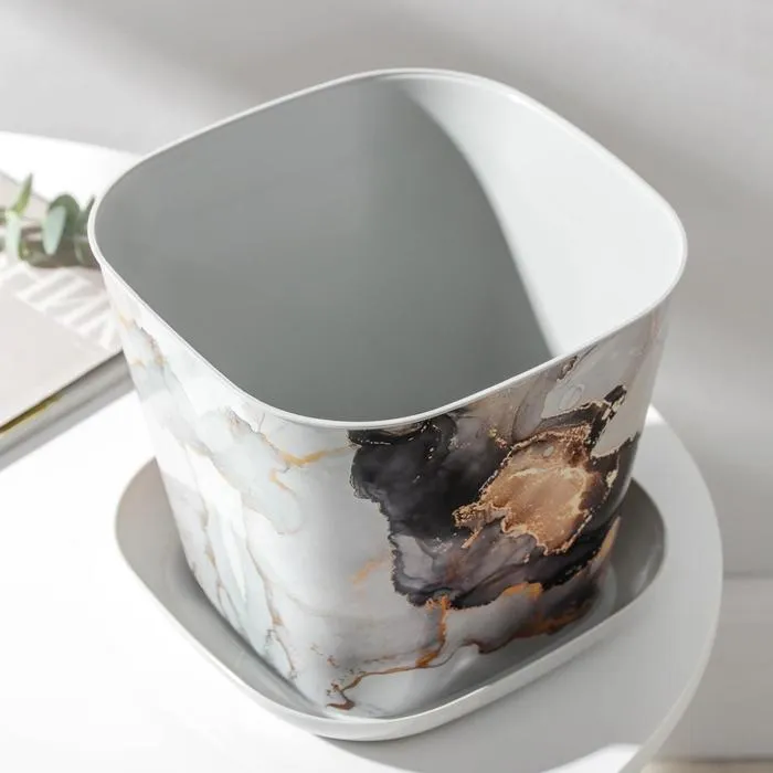 Горшок с поддоном «Мрамор», 3.7 л, пластиковый, светло-серый