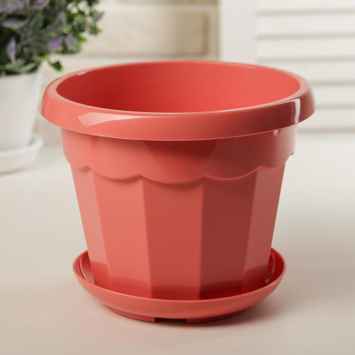 Горшок для цветов с поддоном «Доляна. Эрика», 1.8 л, пластиковый, коралловый