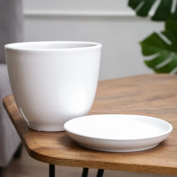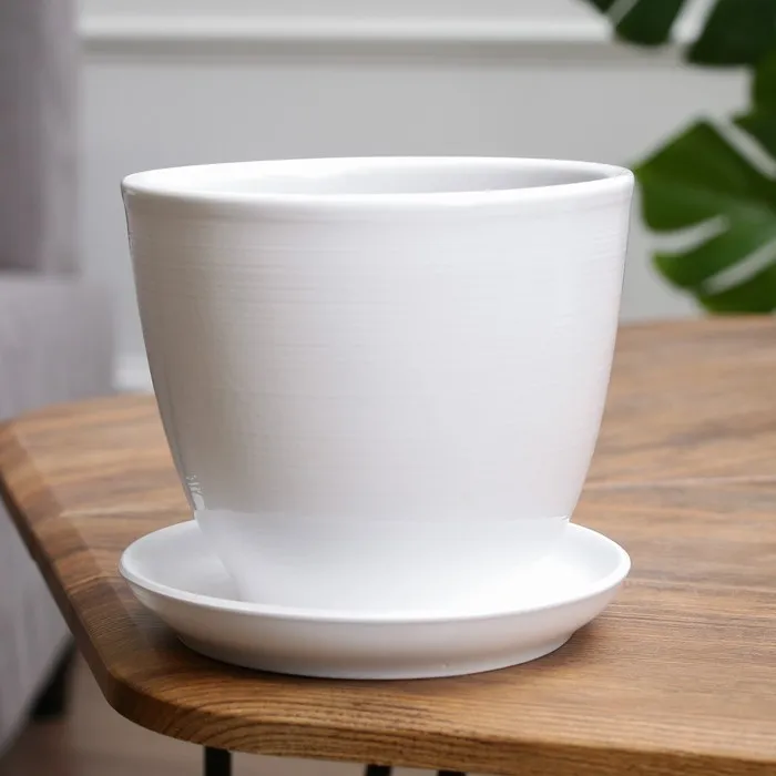 Горшок для цветов с поддоном «Байкал», 2 л, пластиковый, белый