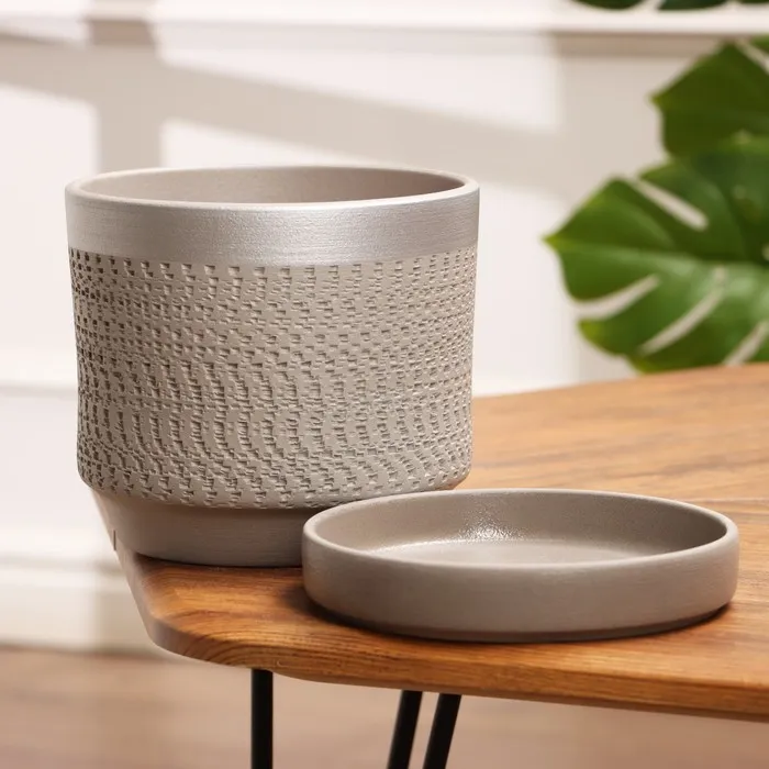 Горшок цветочный «Брюссель», 2.6 л, серебристый обод, серый — Характеристики