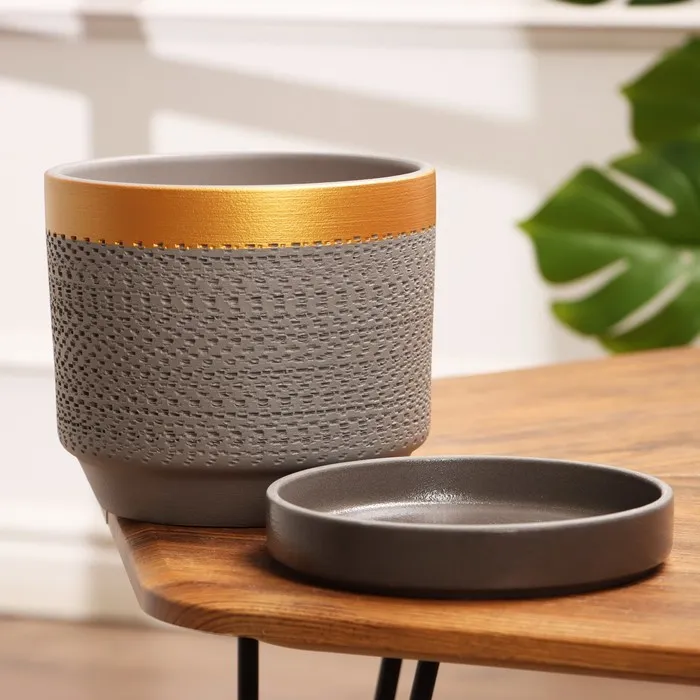 Горшок цветочный «Брюссель», 2.6 л, золотистый обод, серый — Характеристики