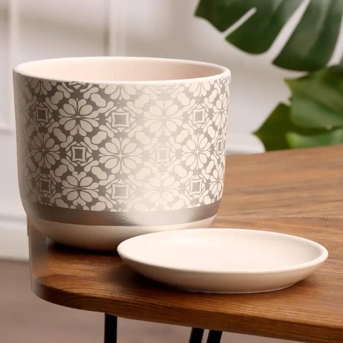 Горшок цветочный Гипюр белый бук №2, 1,6 л, d - 15,2 см — Характеристики