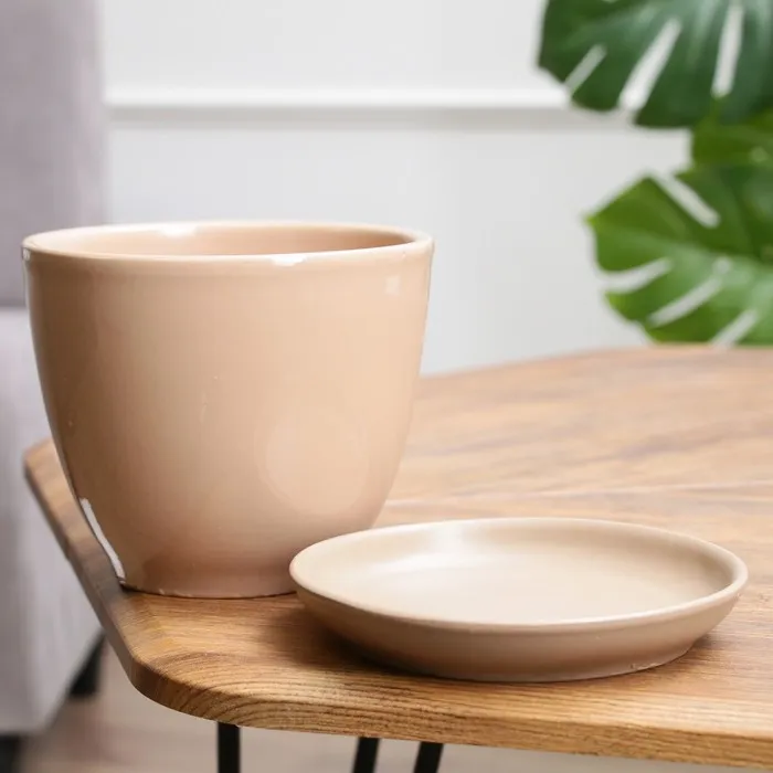 Горшок цветочный с поддоном №4, алебастр, рубин, 2 л