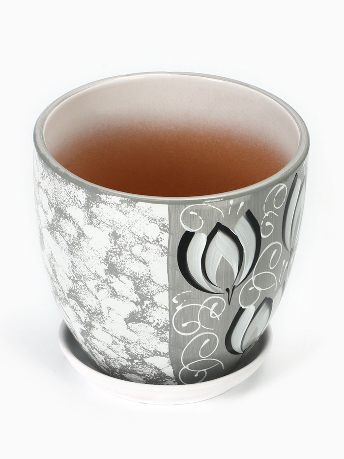 Горшок для цветов «Металлик №3», керамический, с поддоном, 1.6 л, d=15 см, серый