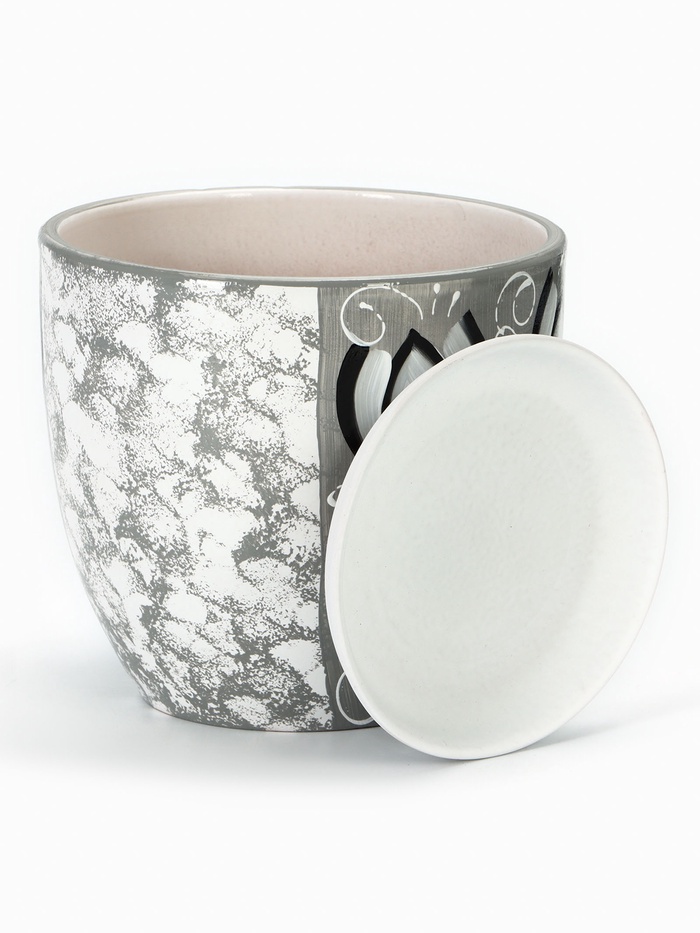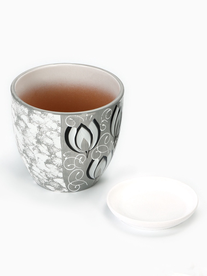 Горшок для цветов «Иллюзия», керамический, с поддоном, 5 л, белый с геометрическим орнаментом