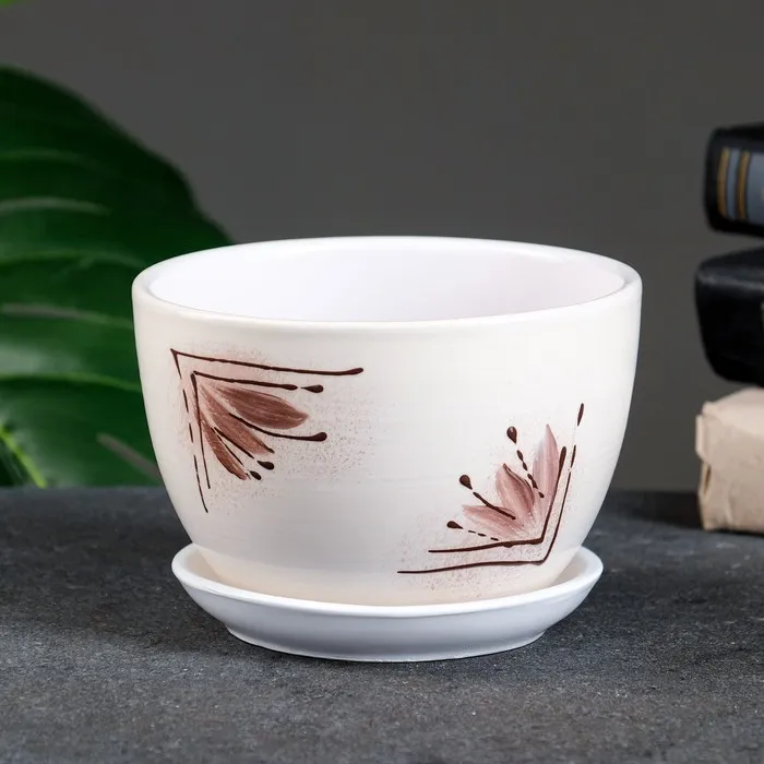 Горшок цветочный с поддоном №4, алебастр, рубин, 2 л