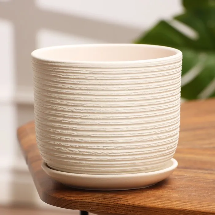 Горшок цветочный «Лоза», керамический, с поддоном, 1.6 л, бежевый — Характеристики