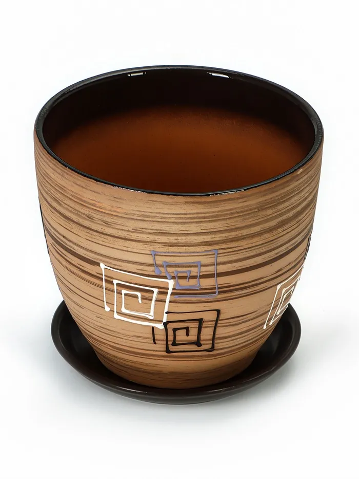 Горшок для цветов «Восток», керамический, с поддоном, 350 мл, коричневый с иероглифом