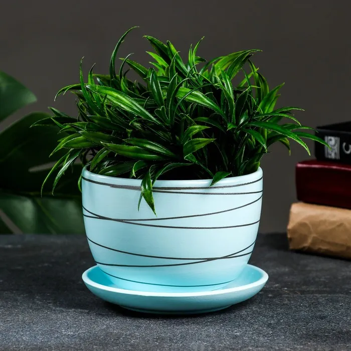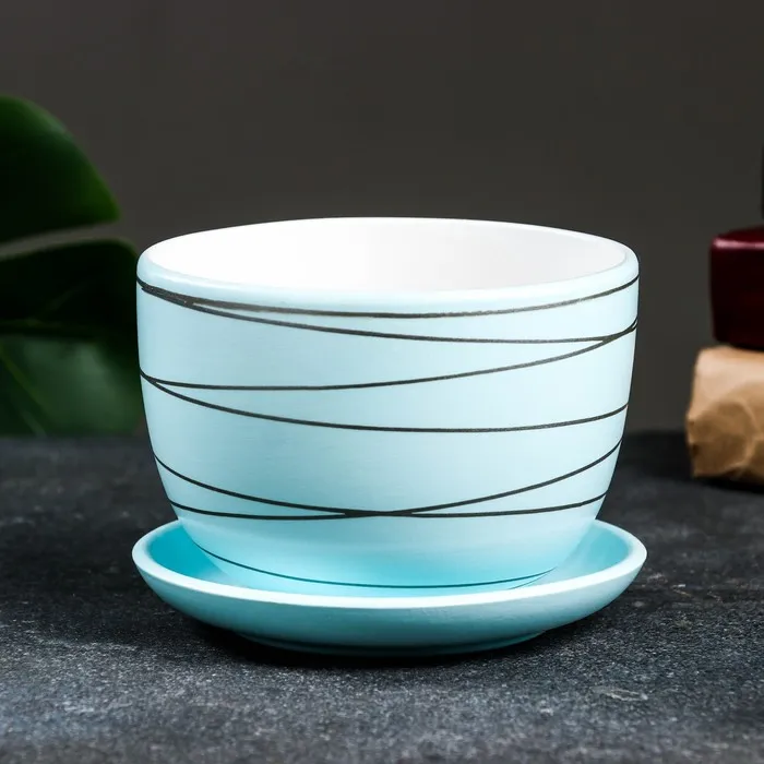 Горшок цветочный с поддоном 0,5 л, голубой, керамика, "Магнолия" (М) — Характеристики