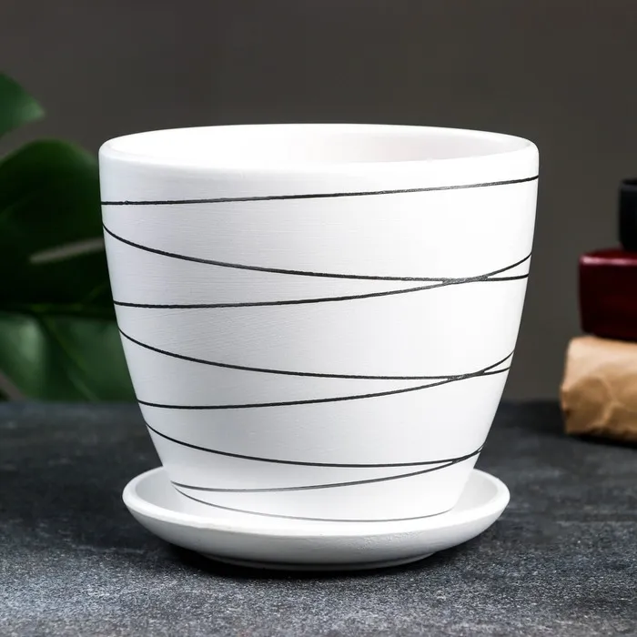 Горшок цветочный с поддоном 1,4 л, белый, керамика, "Магнолия" (М) — Характеристики