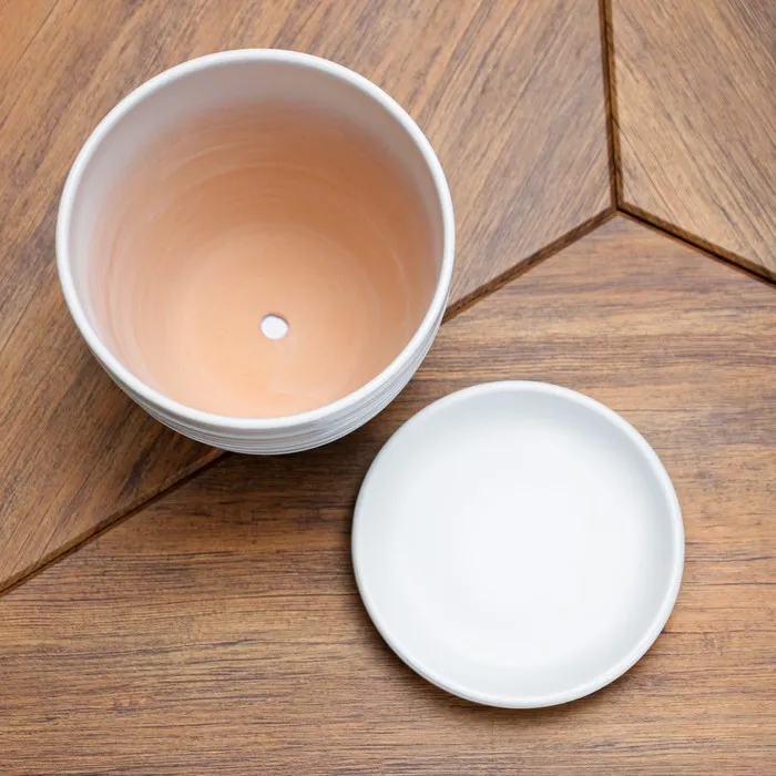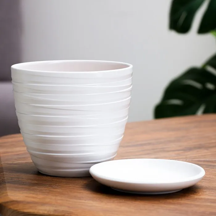 Горшок цветочный с поддоном 1,4 л, белый, керамика, "Нежность" (М) — Характеристики