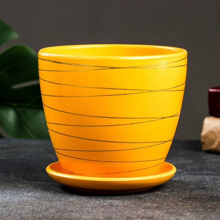Горшок цветочный с поддоном 1,4 л, желтый, керамика, "Магнолия" (М) — Характеристики