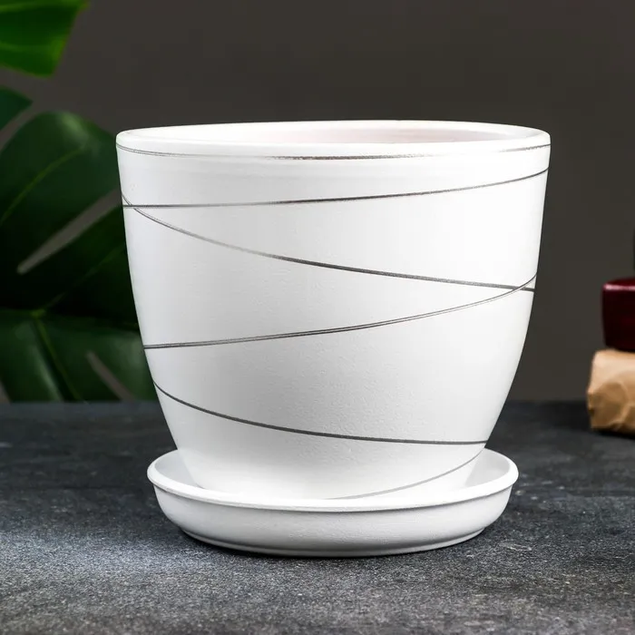 Горшок цветочный с поддоном 2,4 л, белый, керамика, "Магнолия" (М) — Характеристики