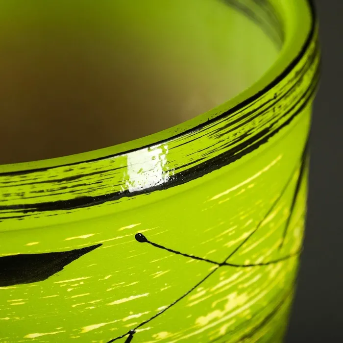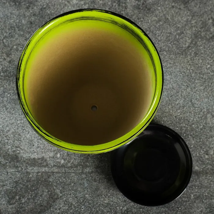 Горшок цветочный с поддоном 2,4л, зеленый с рисунком, "Листья" (М) — Характеристики