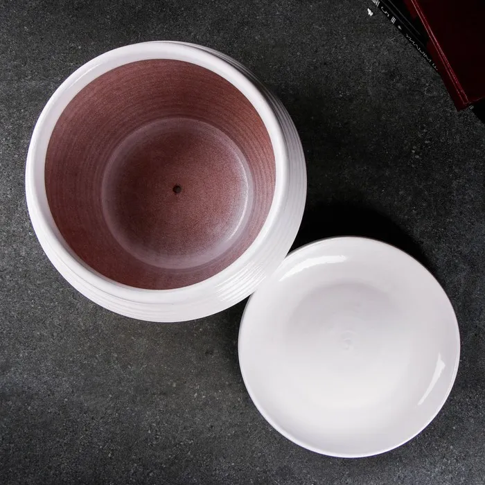 Горшок цветочный с поддоном 6,5 л, белый керамика, "Сатурн" (М) — Характеристики