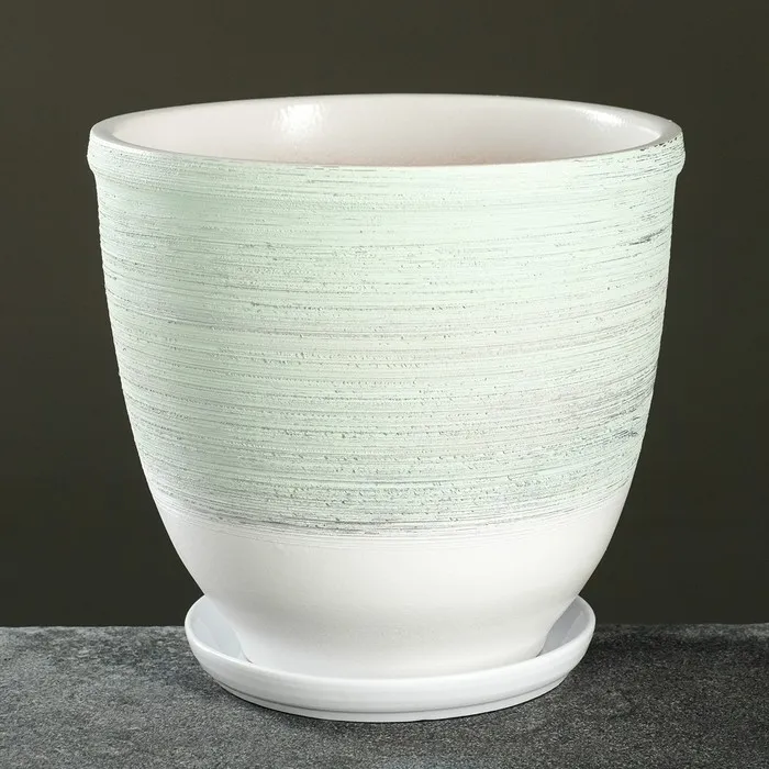 Горшок цветочный с поддоном 7,5л, белый/мятный керамика, "Бабл гам" (М)
