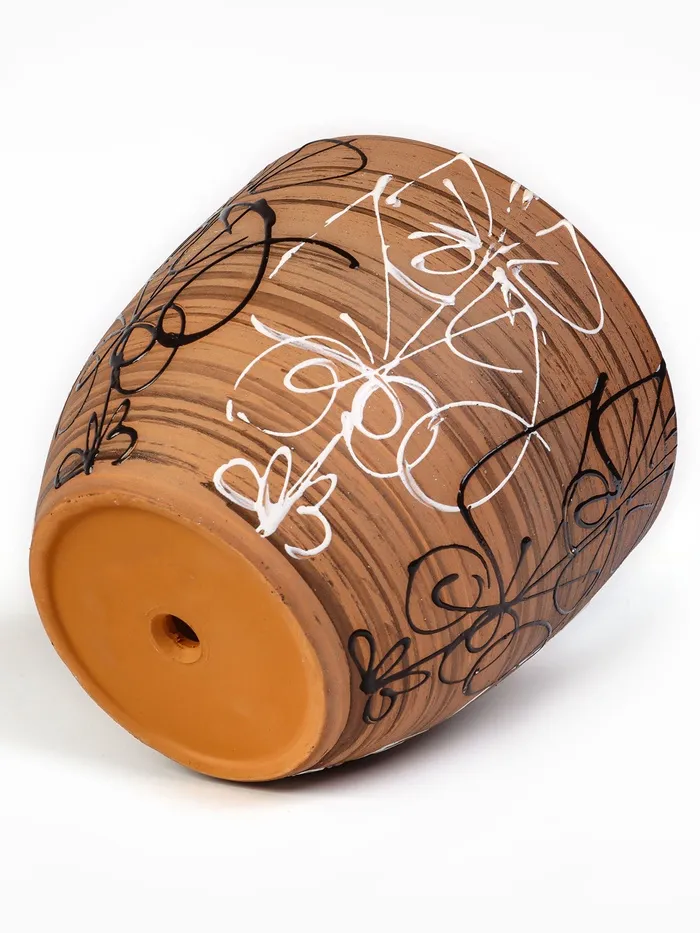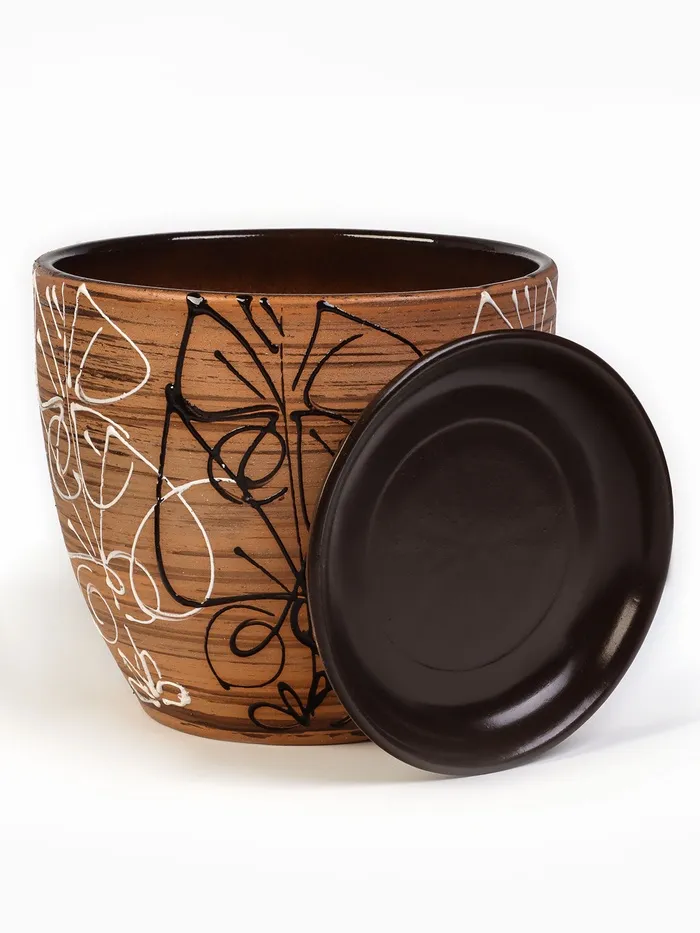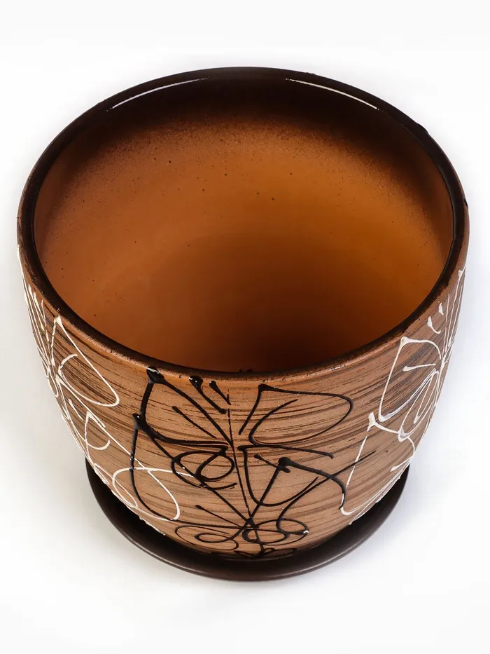 Горшок для цветов «Восток», керамический, с поддоном, 5 л, коричневый с иероглифом
