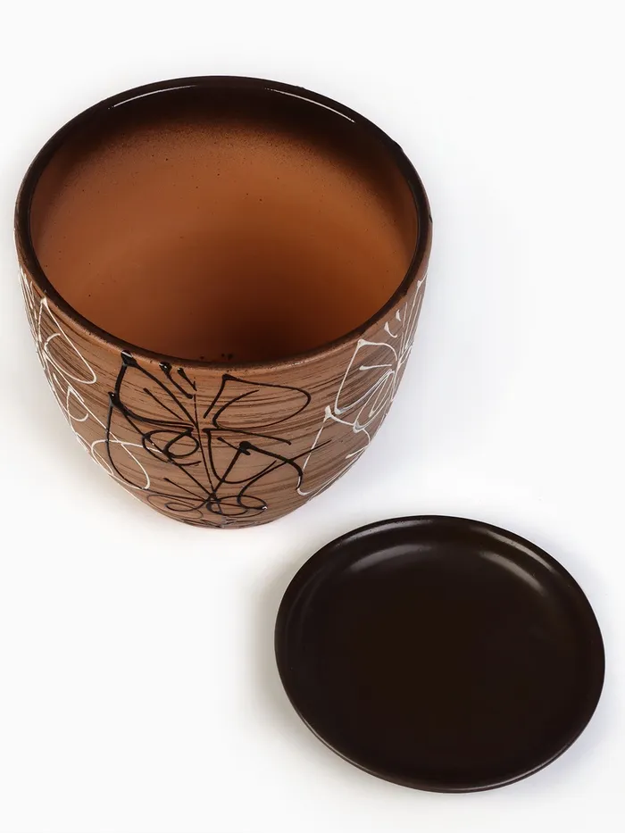 Горшок для цветов «Восток», керамический, с поддоном, 350 мл, коричневый с иероглифом