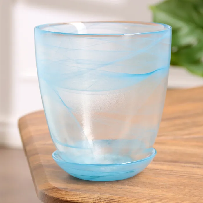 Горшок для орхидей «Гармония», стеклянный, с поддоном, 1 л, прозрачный с голубым рисунком