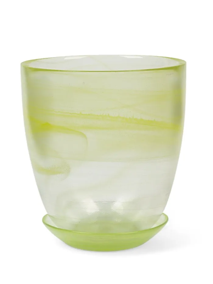 Горшок для орхидей «Гармония», стеклянный, с поддоном, 2 л, прозрачный с жёлтым рисунком