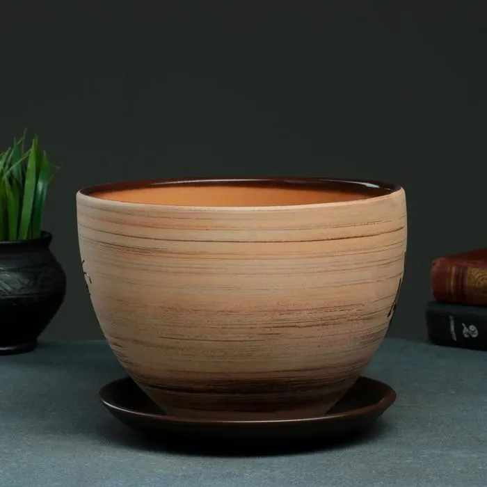 Горшок цветочный с поддоном №4, алебастр, рубин, 2 л