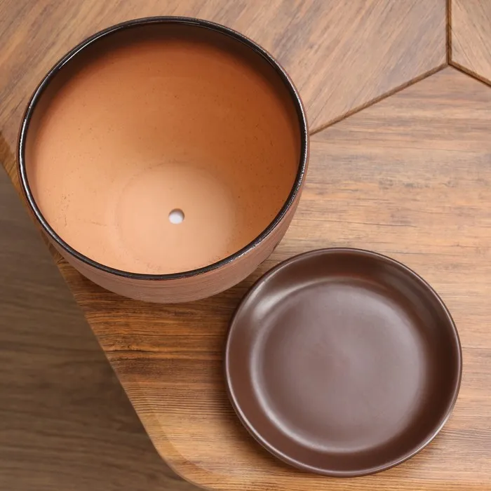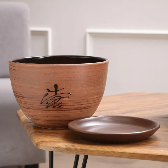 Горшок для цветов «Восток», керамический, с поддоном, 5 л, коричневый с иероглифом