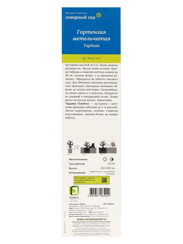 Гортензия метельчатая (Серия Северный Сад) «Тардива», саженец декоративный, цветущий, 1 шт., туба — Характеристики