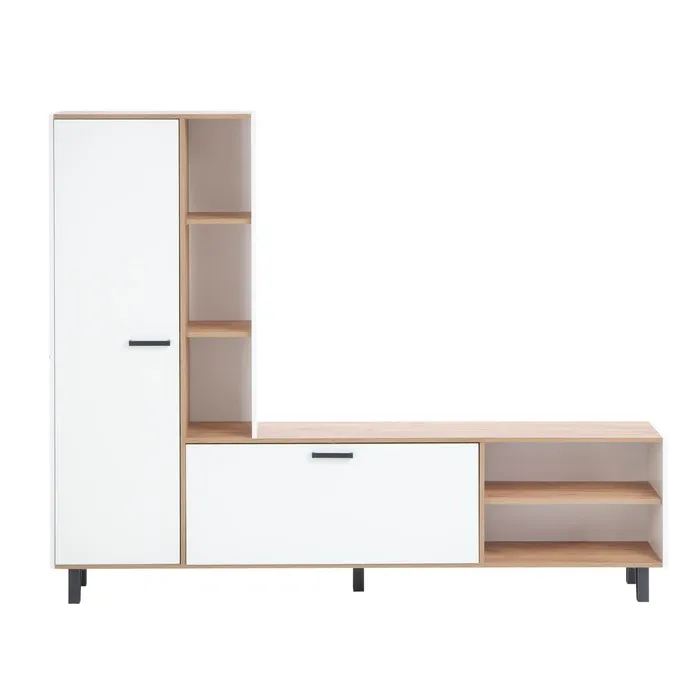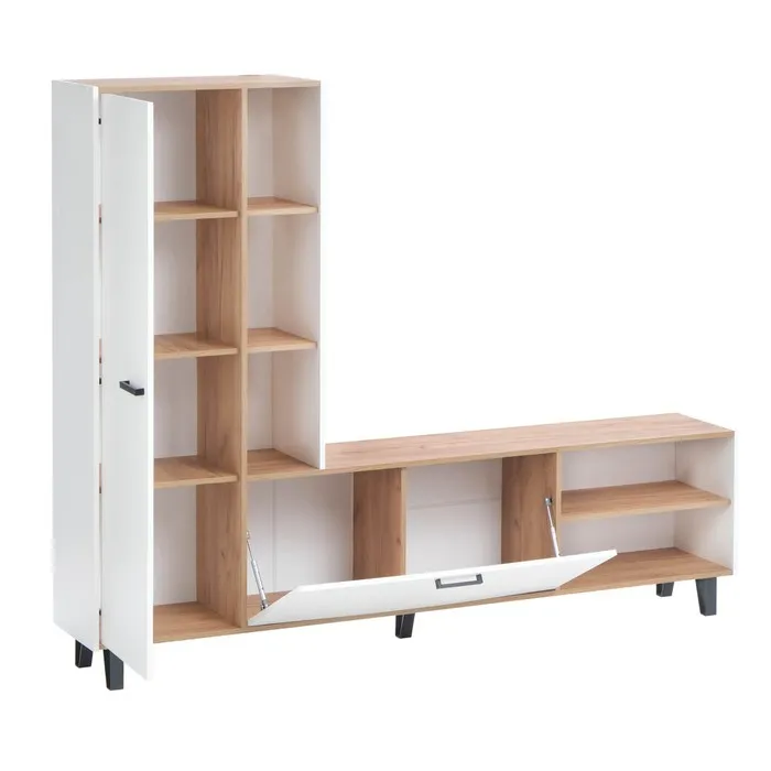- В комплекте предусмотрены все необходимые элементы для хранения вещей и организации пространства: полки и шкафчики.