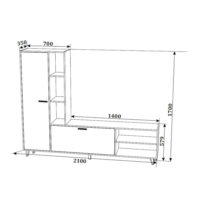 Гостиная «Анриал. Клик Мебель», 2100×350×1700 мм, цвет дуб крафт золотой/белый — Характеристики
