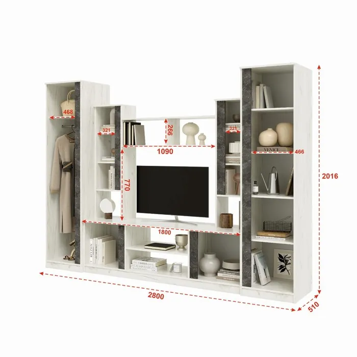 Ниша для телевизора: Размер ниши под телевизор (1090 на 770 мм) обеспечивает идеальное расположение для вашего телевизионного уголка.