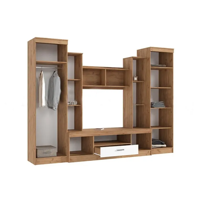 - Многофункциональность: Благодаря различным типам стенок, гостиную можно легко адаптировать под любые нужды – будь то хранение книг, размещение декоративных элементов или установка бытовой техники.