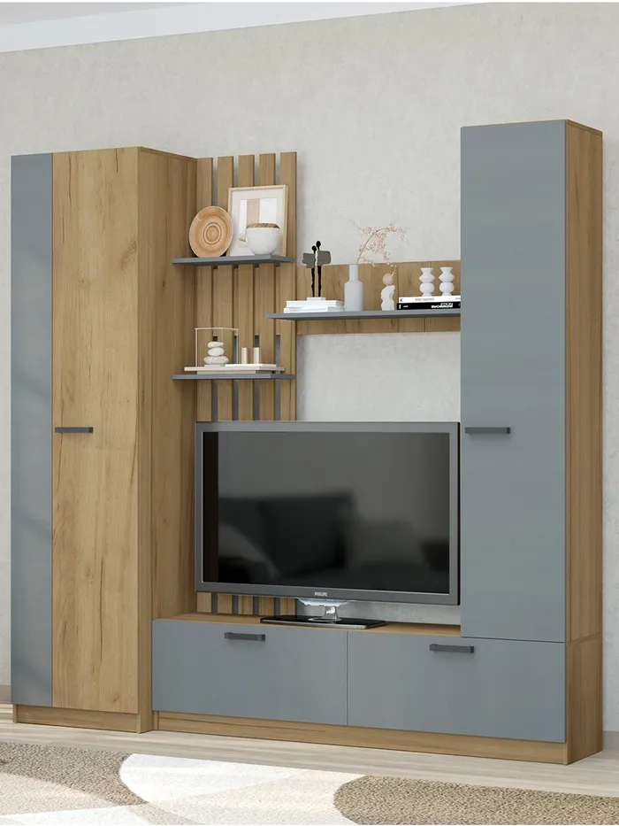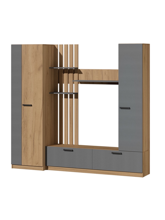 Гостиная «Юджи», 2300×470×2100 мм, цвет дуб крафт золотой/графит — Характеристики