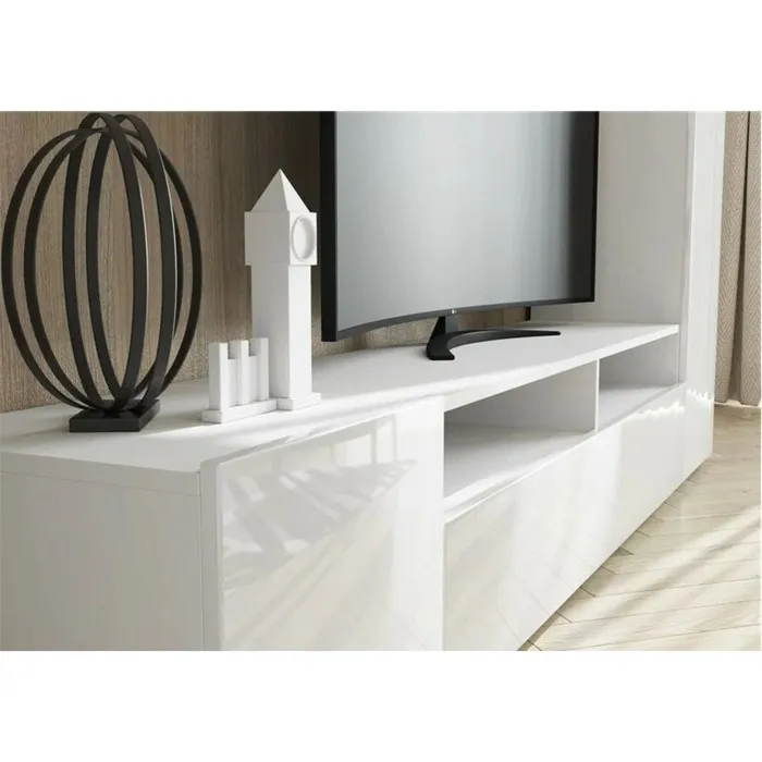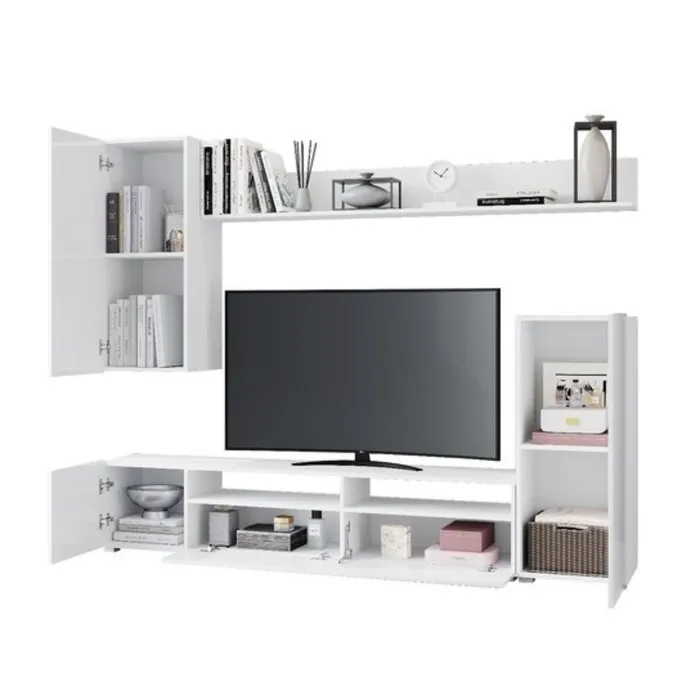 - Эстетика: Чистый белый цвет и глянцевые фасады придают гостиной современный и элегантный вид, который впишется в любой интерьер.
