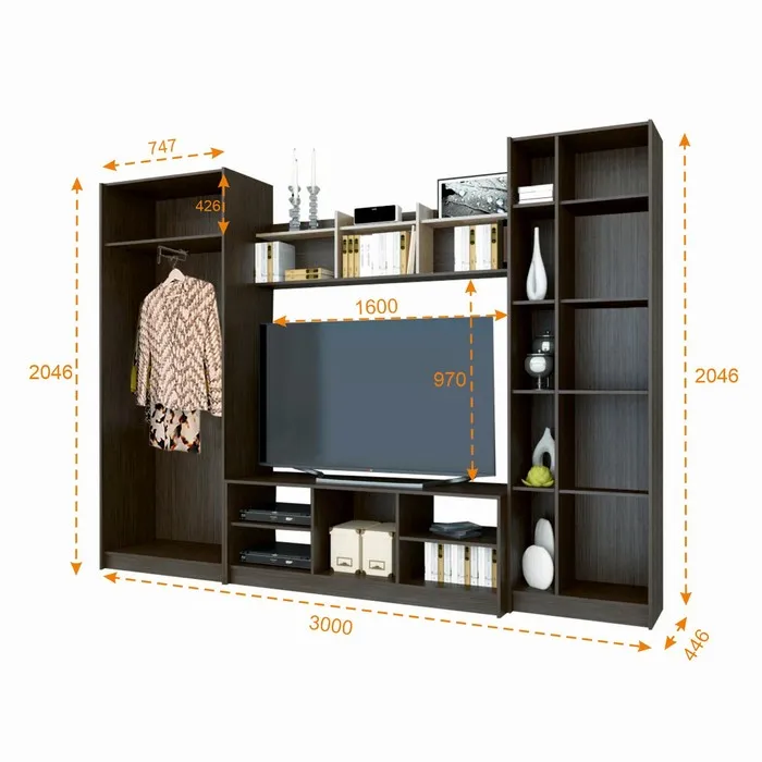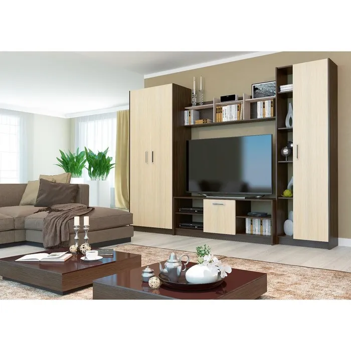 Гостиная Милан - это современное и функциональное решение для вашего дома. Сочетает в себе удобство и практичность, обеспечивая комфорт и уют. Материал - ЛДСП гарантирует прочность и долговечность конструкции. Особенностью данной модели является наличие вместительных открытых и закрытых ниш для хранения книг, вещей и предметов. Это позволяет сэкономить пространство в комнате и удобно разместить все необходимое по своим местам.