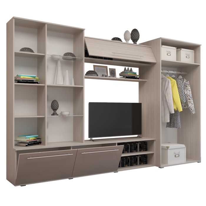 - Обустройство зоны гостиной с местом для ТВ и хранения