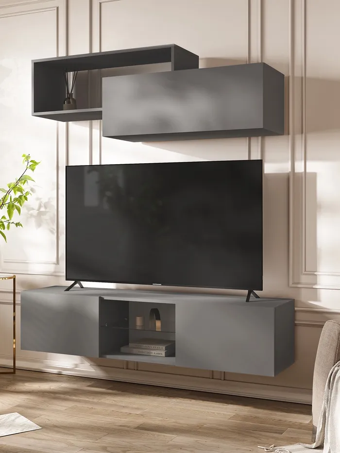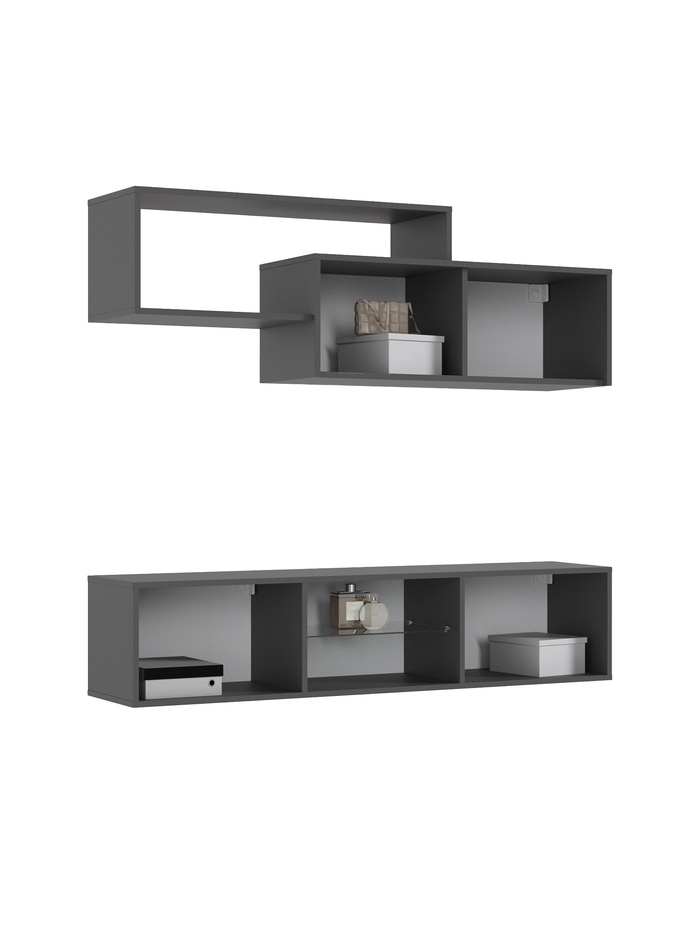 Гостиная «Норд», тумба 1500×350×330 мм, полка 1388×350×460 мм, цвет графит/графит — Характеристики