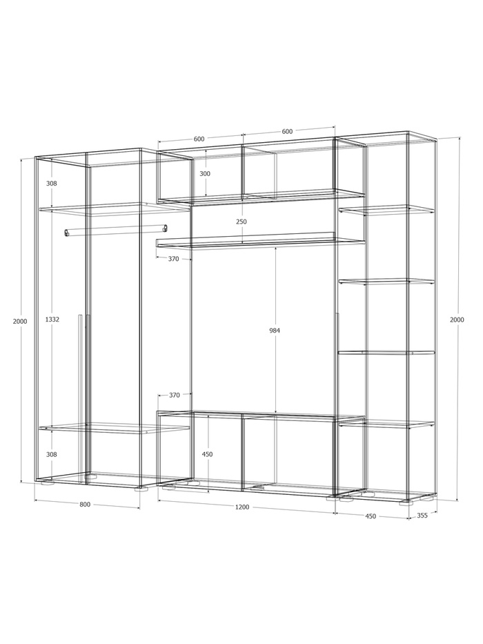 Гостиная «Норден», 2450×530×2000 мм, цвет дуб крафт белый — Характеристики