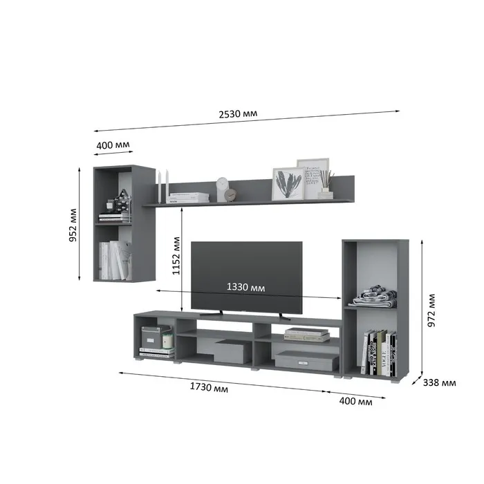 Гостиная под телевизор «Лира», 2130×1680×350 мм, цвет серый графит — Характеристики