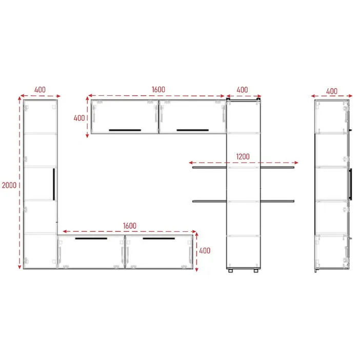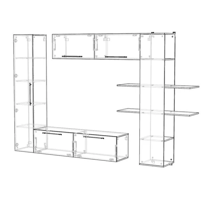 Гостиная подвесная Дороти, 3200х400х1700 - это элегантная и стильная подвесная мебельная композиция. Прекрасное решение для современного интерьера. С подвесной гостиной Дороти можно легко навести порядок в доме и в вашей гостиной всегда будет чисто и свежо. Гостиная модульная, поэтому горизонтальные и вертикальные шкафы между собой не связаны и их можно менять местами. В комплекте присутствует прямой навес для крепления к стене. К горизонтальным шкафам предусмотрено крепление щита.