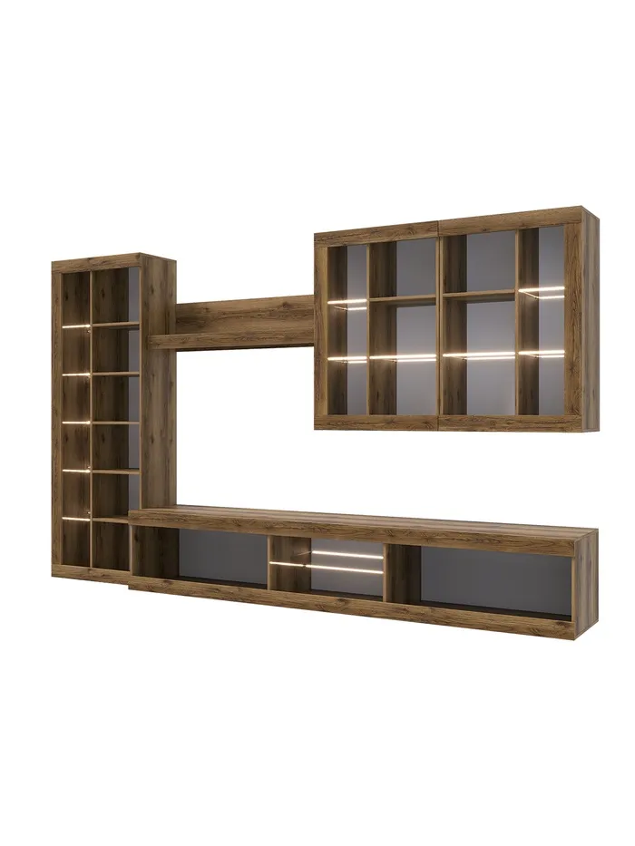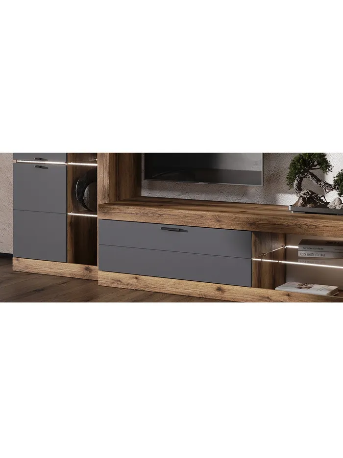 Дизайн в оттенках дуба делано и графита софт создаёт атмосферу уюта и современности, подходя для любителей классических и современных интерьеров. Гостиная обеспечит максимальный комфорт в использовании.