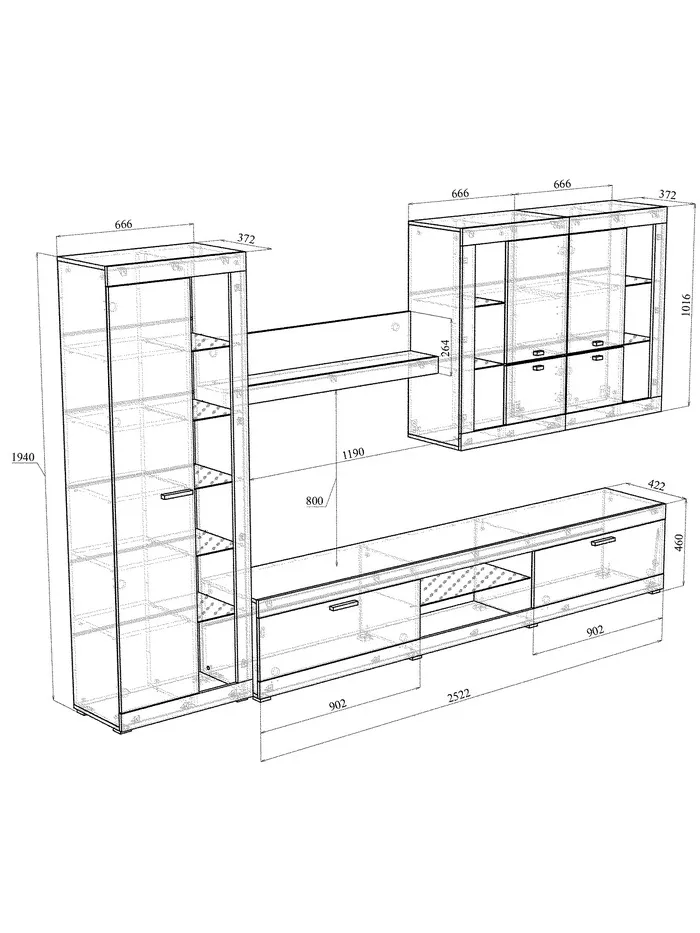- Просторное хранение: вместительный шкаф с полками и тумба с ящиками обеспечивают достаточно места для хранения книг, декоративных элементов и других предметов.